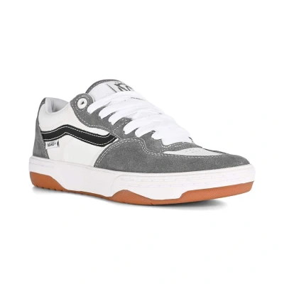 * The Vans Rowan 2 is an all-new technical skateboard shoe from Rowan Zorilla, packed with tech and oozing style * A grey suede upper with white leather underlays and white and black details atop a white and gum sole unit * IMPACTWAFFLE™ outsole for premium impact protection without losing any board feel * Sockliner added on top of a moulded midsole for added comfort, made from 98% recycled materials * SICKSTICK™ rubber used for the cupsole construction creates fantastic grip as well as durability * Custom branded logo on the tongue * Padding in the collar gives added support * DURACAP™ toe cap for durability in high abrasion areas * Fit: Runs true to size, we recommend taking your usual size