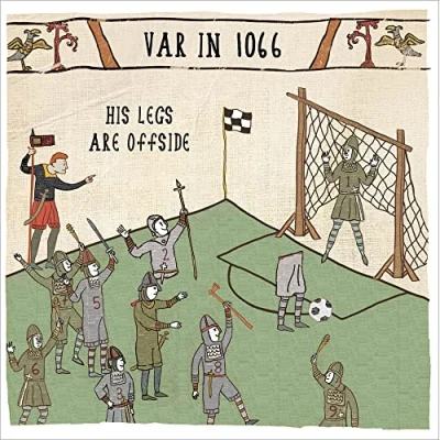 VAR in 1066 His Legs are Offside Funny Humourous Horrible Histories Football Fun Blank Any Occasion Greeting Card From Hysterical Heritage