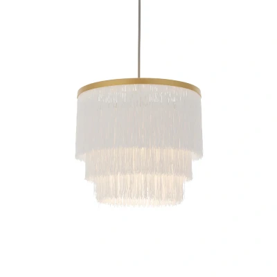 Gracious and eye-catching the Varese 1-Light Matt Gold Paint and White Tassels Ceiling Pendant is a remarkable choice for illumination in any decorating style. From the fabulous tassel fringe to the elegant gleaming finish, this fixture is a perfect way to show off your style.