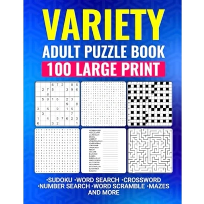Variety Adult Puzzle Book: 100 Large Print Sudoku, Word Search, Crossword, Number Scramble Mazes and More