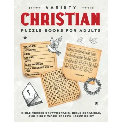 Variety Christian Puzzle Books for Adults: Bible Verses Cryptograms, Scramble, and Word Search Large Print (Bible Adults)