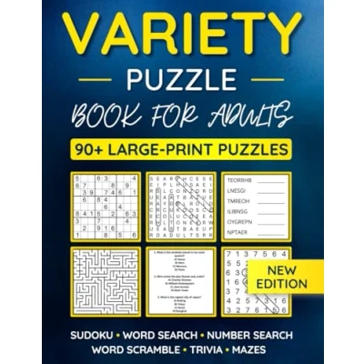 Variety Puzzle Book For Adults: 90+ Large Print Puzzles Word Search, Sudoku, Scramble, Number Trivia, Mazes