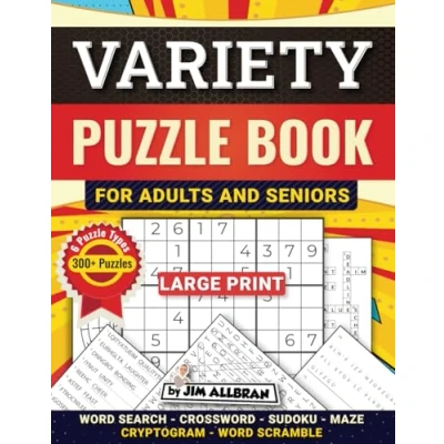 Variety Puzzle Book for Adults and Seniors (Large Print): Word Search, Crossword, Sudoku, Cryptogram, Scramble more!