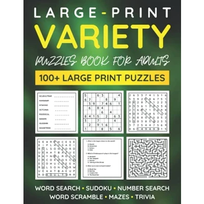 Variety Puzzle Book For Adults Large Print: 100+ Puzzles Word Search, Sudoku, Scramble, Number Trivia, Mazes