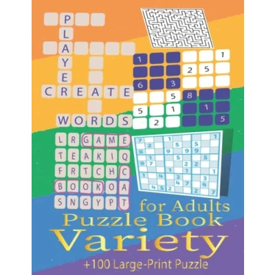 Variety Puzzle Book For Adults: Mixed Activity Puzzles (Word Scramble,Mazes,Word search,Sudoku,Trivia...),+100 Large Print Brain Games