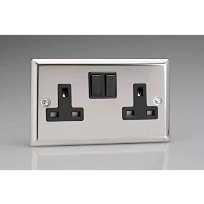 2 Gang (Double) 13 Amp Switched Socket Classic Polished Chrome Plate Also known as Classic Mirror Chrome Black Switches and Socket Inserts, Manufacturer: Varilight