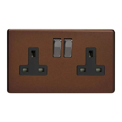 Varilight Screw Less Mocha 2G 13A Switched Socket Black