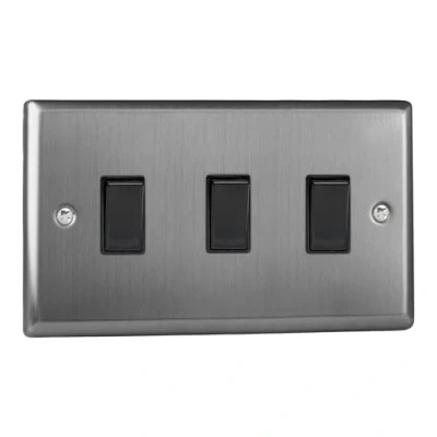 Varilight 3 Gang 10A 1 or 2 Way Rocker Switch (Twin Plate) Brushed Steel