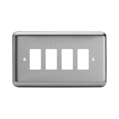 Varilight Power Grid Double Plate 4 Gang Matt Chrome Including Yoke