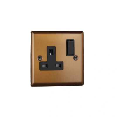Varilight Urban Brushed Bronze 1 Gang Double Pole Switched 13 Amp Plug Socket with Black Insert