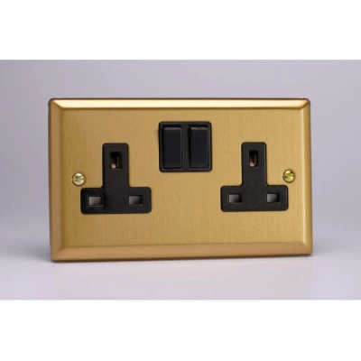Varilight XB5B 13A Socket, 2 Gang, Pole, Classic Brushed Brass + Black Insert