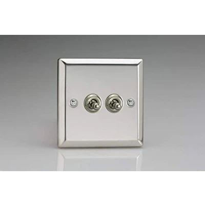 Varilight XCT2 Toggle Switches 2 Gang Mirror Chrome,91x91x36mm (Pack of 2)