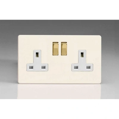 Varilight XDY5VWS.PD 13A Socket, 2 Gang, Pole, screwless Primed + Brass/White Insert
