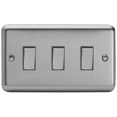Varilight XT93D Rocker Switches Brushed Steel 3 Gang,91x150x25mm