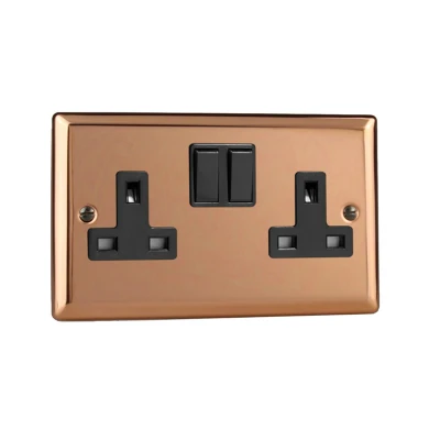 Varilight XY5B.CU 2 Gang Switched Socket DP 13 Amp Polished Copper (Black Inserts)