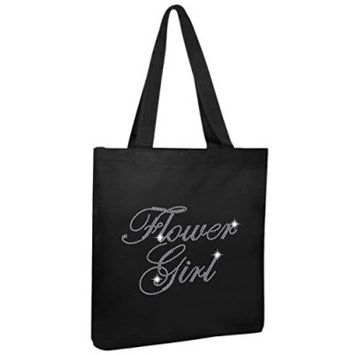 Varsany Black Flower Girl Luxury Crystal Bride Tote bag wedding party gift Cotton