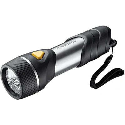 Thanks to a three-component housing (stainless steel, rubber and ABS plastic), the light is particularly durable; It is therefore suitable for walking and hiking, as well as for use in cars, sheds, garages, at home or for repair and construction work 14x5mm LED torch with Multi LED technology The light output is up to 70 Lumen, and the range up to 32 metres The lights have a rubber-coated non-slip handle and a carry strap, for a comfortable and secure grip in every situation The battery lasts for up to 125 hours: 2x VARTA Longlife Power D batteries included