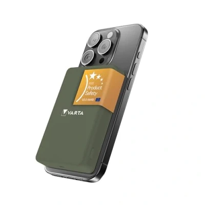 VARTA Power Bank 5000mAh, magnetic wireless bank, Mag Pro on Demand, wireless, 7,5W, charging with USB Typ C, compatible MagSafe & Qi standard (iPhones Android), olive green