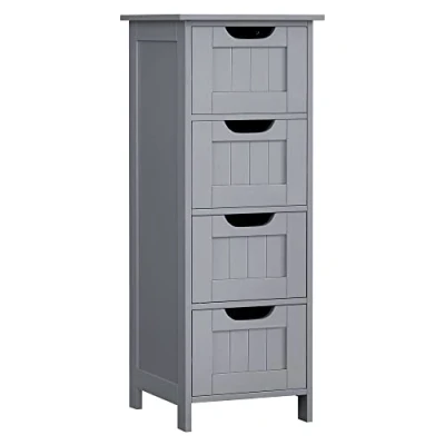 [Roomy yet Space-Saving] This 30 x 30 x 82 cm bathroom cabinet with 4 drawers occupies little floor space yet offers plenty of storage for your bathroom items like toilet paper and perfume [Suitable for Various Spaces] Beyond the bathroom, this storage unit works equally well in the living room to organise CDs and photo albums, in the dining room to store glassware, or in the kitchen to house bottles and jars [Go-with-Everything Style] The mystic grey look of this bathroom storage cabinet can easily blend in with various interior design styles, topping off the look of your home with a pop of style [Easy to Assemble] Don't worry about the assembly. The labelled parts, detailed instructions, and the assembly video will help you assemble this freestanding bathroom cabinet in no time [Durable and Stable] Made of sturdy MDF, this bathroom storage unit boasts a long service life. The included anti-tip kit helps you secure the cabinet to the wall for added stability