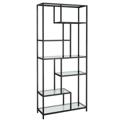 [Multiple Storage Options] This 30 x 80 x 180 cm geometric-shaped bookcase has shelves of different heights (max. height: 57.2 cm, min. height: 26.4 cm) to make it easy to store knick-knacks of varying sizes [Various Uses, More Possibilities] This 6-tier bookshelf can be used in the study to store books and magazines, in the living room to display photos or ornaments, or in the kitchen to store bottles and jars [Durable and Sturdy] With robust tempered glass and steel, this shelf unit can hold up to 40 kg. It ensures durability, sturdiness, and a long service life wherever this shelf unit goes in your home, keeping you company for all the good times to come [Good Stability] This tall bookcase has adjustable feet on the bottom, making this shelf stable on slightly uneven ground; the anti-tip kit further increases the stability and safety of this decorative bookcase [Easy to Assemble] No additional tools are required! With detailed instructions and numbered parts, you can quickly assemble this 6-tier decorative shelving unit and get to decorating before you know it