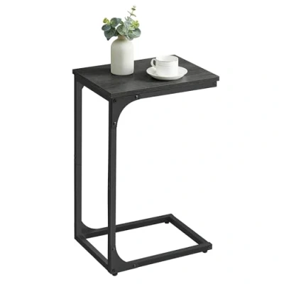 VASAGLE C Shaped Side Table, Bedside Sofa Coffee with Metal Frame, Industrial, for Living Room, Bedroom, Misty Grey and Ink Black LET350B68