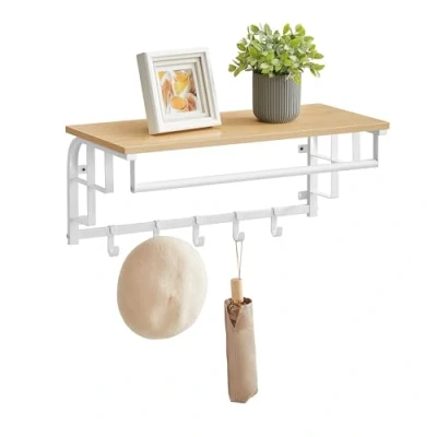 VASAGLE Coat Rack Wall Mounted, Clothes Rail with 5 Removable Hooks, Floating Shelf Hanging Rail, for Hallway, Bedroom, Living Room, Golden Oak and Cloud White LCR012N01