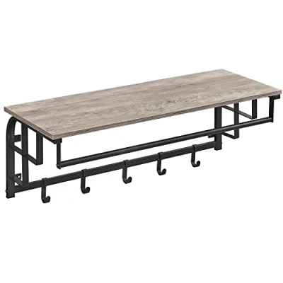 [Fully Utilize Wall Space] Wall-mounted coat rack turns a blank wall into a useful space to keep your coats, bags, umbrellas, and keys organised and close at hand [Three-in-One Design] Comes with a large shelf (66 x 30 cm), a hanging rail, and 5 hooks to meet your various needs with a minimal space; use as a display shelf or coat rack [Made to Last] Steel frame provides sturdy and steady support; improved expansion bolts and screws for added firmness; the shelf holds up to 15 kg, each hook 3 kg, and hanging rail 10 kg [Versatile & Decorative] Combines greige shelf with black frame, adding a chic, elegant look to your space; fits into your entryway, hallway, or bedroom [What You Get] A wall coat rack made of particleboard and steel with clear instructions for easy assembly. So treat yourself to this practical piece of furniture from our DAINTREE Collection and get rid of the chaos in your hallway!, Weight: 8.377565956 pounds, Manufacturer: VASAGLE