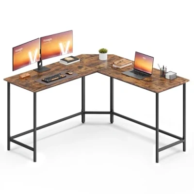 VASAGLE Computer Desk, L Shaped Corner 140 x 76 cm, Gaming Workstation for Home Office, Space Saving, Easy to Assemble, Rustic Brown and Ink Black LWD73XV1