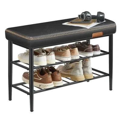 [Style That Speaks] This shoe bench comes from our VASAGLE EKHO Collection—a furniture line that blends richly textured synthetic leather with refined stitching. A tangible homage to craftsmanship, it helps craft a home that speaks volumes about style [Comfort at Every Sit] Glide your hand over the smooth cover, then sink into the supportive 6 cm thick, 25D high-resilience foam, designed to resist deformation. This shoe bench provides a comfortable seat that endures, standing the test of time [Strong and Steady] Made with a tough steel frame and swivel levelling feet, this upholstered shoe bench can hold up to 135 kg easily. It gives you a firm, steady spot to sit, perfect for starting or winding down your day [Enhanced Storage, Vacuum-Friendly] This cleverly designed bottom shelf stands 10 cm off the ground, providing 3 tiers of shoe storage. Plus, it's high enough for your robo-vac to clean under, helping keep your space neat and clean [Simple Care, Easy Assembly] This shoe rack bench features a synthetic leather cover that wipes clean in seconds. With clear instructions and a provided assembly tool, setting it up is a breeze. Enjoy ease and convenience with our bench, Manufacturer: VASAGLE