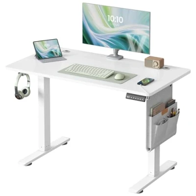 Promote Healthy Posture: This standing desk's height adjusts between 72 and 120 cm, allowing you to easily switch between sitting and standing. You can also save 4 preferred heights for quick access Sturdy, Smooth, Silent: The strong steel frame and thick desktop allow this office desk to support up to 70 kg. The premium motor ensures the desktop lifts smoothly with a noise level of ≤ 48 dB, maintaining a quiet work environment User-Friendly Design: 2 cable holes provide convenient cable management, the fabric pocket neatly stores small items, and the large hook is perfect for hanging your bag or headphones Convenient Charging & Energy Saving: The controller features a 20W USB-C fast charging port for your devices, and the screen automatically turns off after one minute of inactivity to conserve energy Easy Assembly: Assembling this height-adjustable desk is a breeze with labelled parts and clear instructions