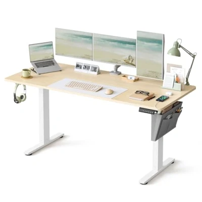 Promote Healthy Posture: This standing desk's height adjusts between 72 and 120 cm, allowing you to easily switch between sitting and standing. You can also save 4 preferred heights for quick access Sturdy, Smooth, Silent: The strong steel frame and thick desktop allow this office desk to support up to 70 kg. The premium motor ensures the desktop lifts smoothly with a noise level of ≤ 48 dB, maintaining a quiet work environment User-Friendly Design: 2 cable holes provide convenient cable management, the fabric pocket neatly stores small items, and the large hook is perfect for hanging your bag or headphones Stylish and Spacious: Boasting a minimalist design with clean lines, this electric standing desk enhances the style of your workspace, while the 160 x 70 cm desktop offers a large working area Easy Assembly: Assembling this height-adjustable desk is a breeze with labelled parts and clear instructions