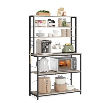 VASAGLE Kitchen Storage Rack, Coffee Bar, Baker’s Total 6 Shelves and Hooks, for Microwave, Steel Frame, Industrial, 40 x 100 167 cm, Greige Black KKS039K02