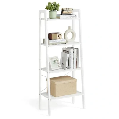 [Stable] Designed in a solid frame, reinforced by X-shaped bars, balanced by adjustable feet, and secured by an anti-tip kit, this ladder shelf features great stability [Durable] Crafted with a robust steel frame and quality particleboard, this 4-tier bookshelf is durable for long-term use [Reasonable Spacing] This storage rack sized 34 x 56 x 137.5 cm offers plenty of space while taking up a little floor space. Shelves with a 33 cm distance between them hold even taller items. 19 cm floor space is enough for vacuuming [Versatile Uses] Use it as a storage rack in the living room, as a plant stand on the balcony, as a bookshelf in the home office, or as a storage rack in the kitchen—wherever you place it, it always comes in handy [Easy to Assemble] Numbered parts and easy-to-follow instructions will help you finish the assembly of this freestanding rack effortlessly