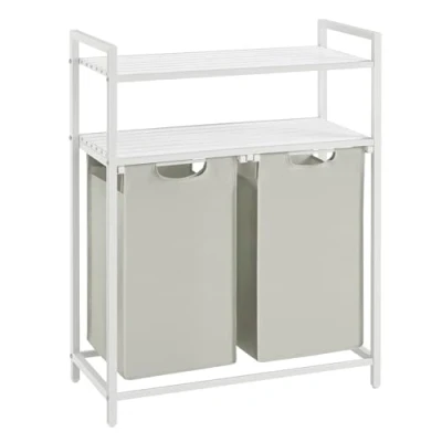 VASAGLE Laundry Basket, Hamper, Sorter with 2 Pull Out and Removable Bags, Shelves, 46L Capacity per Bag, for Room, White BLH211W01