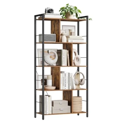 VASAGLE Storage Unit, Bookcase, 5 Tiers, Open Compartments, Office Living Room, Bedroom, Industrial Style, Rustic Brown and Black LBC121B01