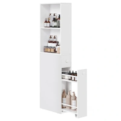 VASAGLE Tall Bathroom Cabinet, Slim Storage Freestanding Narrow Unit with Drawers and Adjustable Shelf, for Small Spaces, Modern Style, Classic White BBK567T14