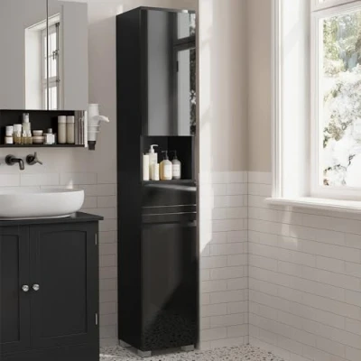 Sorted Storage: Our slim bathroom cabinet features upper and lower cabinets, shelves, and drawers. This offers 3 types of storage solutions in 6 compartments to store items by type Flexible Uses: The upper and lower cabinet doors can be installed on the left or right according to your preference, while the shelves inside the cabinets can be adjusted to accommodate items of different heights Easy to Assemble & Clean: With numbered parts and easy-to-follow instructions, assembling this tall bathroom cabinet is a breeze. Additionally, the smooth door panels are easy to clean Elegant Modern Look: Designed with sleek lines and an elegant black colour, this bathroom storage unit effortlessly complements the decor of your bathroom, living room, or hallway Strong, Stable, and Safe: Made of quality MDF, this narrow storage cabinet is built to last. An anti-tip kit is provided to further enhance the overall stability and safety