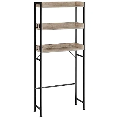 [There’s Always Space To Discover] It's the blank space above the toilet! Cover it with this toilet rack that combines greige and elegant black colours, and you’ll be able to make full use of the idle space while adding charming flair [Necessities Within Reach] Comic books below to pass the time on the toilet, bathroom supplies on the middle level, and how about a potted plant on top? 3 open shelves ensure easy access and back plates prevent them from falling off [Storage Space Beyond the Bathroom] With the bottom shelf 91 cm off the ground and a 3-height adjustable bar, this over-the-toilet rack not only fits most toilets, but also works well over washing machines or dryers less than 58 cm wide [Easy Assembly] With a simple structure, clear instructions, and numbered parts, the installation will be a breeze, even if you're not good at handiwork [What You Get] An over-the-toilet rack from the ALINRU Collection by VASAGLE, made of sturdy particleboard and stable steel for long-lasting use. Secure it to the wall with the included anti-tip kit for safety
