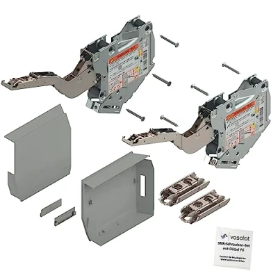 Power storage with infinitely variable adjustment Function: 3-dimensional adjustment of the front, easy tool-free installation thanks to clip mechanism, continuous stop, Blumotion (soft close) for a smooth and quiet closing With Blum eccentric mounting plates with height adjustment +/- 2 mm for attaching the Blum Kraftpseicher Blum HK-S power storage: design power factor: 960 - 2215 mm | clear body depth min. : 163 mm | opening angle: 107° | factory number: 20K2E00.06 Box contents: 1 set Blum power storage HKS with cover caps, 6 pieces clamping plate screws 4 x 35 mm, 1x assembly instructions (English language not guaranteed), 2 pieces Blum clip eccentric mounting plate straight with mounting kit, Weight: 2.4912235606 pounds, Manufacturer: vasalat