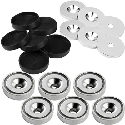 vasalat Pot magnet with bore, metal discs and rubber caps, round diameter 25 mm, neodymium nickel plated 18 pieces
