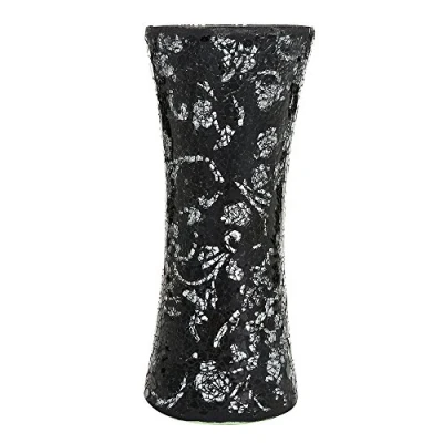 Vase Cylinder Handmade Mosaic Glitter Decorative Sparkled Glass gift present (Cylinder Black Rose)