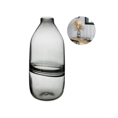 Vase for Flowers and Decorations Furnishings Room, Kitchen, Living Glass, 13.7 x 30 cm, Grey