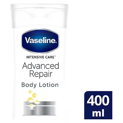 When your skin needs something extra when it's dry and irritated, use this Vaseline Advanced Repair Unscented Body Lotion 400ml. Blended with healing micro-droplets of Vaseline Jelly and high levels of glycerine, it intensely moisturises for soft, healthy-looking skin in only 5 days. Plus, it was awarded the National Eczema Seal of Acceptance, making it suitable for even sensitive skin. Feel the difference with its prescription strength moisturisation and pamper your skin thank to its deep healing!. 1 x Vaseline Advanced Repair Unscented Body Lotion 400ml. Unscented body lotion. Vaseline jelly. Heals and relieves dry skin. Non greasy