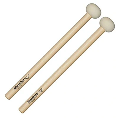 Vater Power Bass Drum mallet 3 for 24"-26" | 60.96 - 66.04cm Drums Features 'power' shaft and hard felt head for a very heavy and powerful sound Durable shaft designed to withstand rim clicks/shots Feature a shaft that starts in the grip area with a .870 (2.21cm) diameter and after the grip area slightly tapers up to a .890 (2.26cm) diameter at the head Made in USA from hand selected hickory