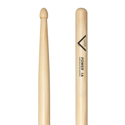 Made in the USA from high grade American hickory, Vater Drumsticks are made the same as they've always been, resulting in a consistent and durable drumstick: Hands-on craftsmanship, higher moisture content in the raw material, lathe turned, tumble finished and hand rolled. All Vater Drumsticks are tone and weight matched by computer analysis. With the same profile and length as the popular 1A model, the Vater American Hickory Power 1A features an larger diameter that is between a 5B and 2B to provide added weight and 'throw'. The Acorn wood tip provides a big, warm tone for the whole drumkit. Wood Type: Hickory | Taper: Short / Medium Tip: Wood | Tip Shape: Acorn Stick Diameter: 0.625" | 1.59cm Stick Length: 16.375" | 41.59cm