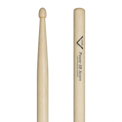 Made in the USA from high grade American hickory, Vater Drumsticks are made the same as they've always been, resulting in a consistent and durable drumstick: Hands-on craftsmanship, higher moisture content in the raw material, lathe turned, tumble finished and hand rolled. All Vater Drumsticks are tone and weight matched by computer analysis. With the same dimensions as the very popular Vater Power 5B model, the Power 5B Acorn features a classic acorn style wood tip for a broader cymbal & drum tone. Wood Type: Hickory | Taper: Short Tip: Wood | Tip Shape: Acorn Stick Diameter: 0.610" | 1.55cm Stick Length: 16 1/4" | 41.27cm