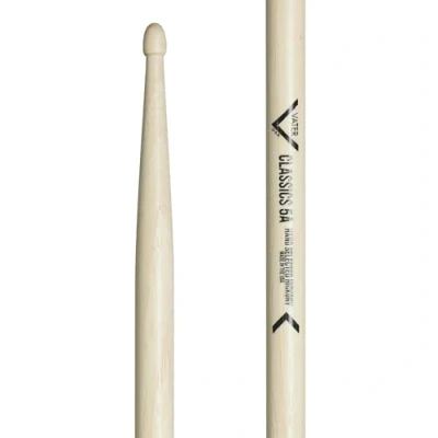 The Vater Classics Series are made in the USA and are a homage to the profiles and sizes of drumsticks that have been core models for drummers since the birth of the 'trap set' drum kit. Available in American Hickory or Sugar Maple with wood and nylon tip options The Vater Classic Hickory 5A Wood Tip: Designed with an acorn tip for a rich full sound from drums and cymbals, the drumstick has a solid and responsive feel that almost plays itself. Wood Type: Hickory | Taper: Medium Tip: Wood | Tip Shape: Acorn Stick Diameter: 0.565" | 1.44cm Stick Length: 16" | 40.64cm