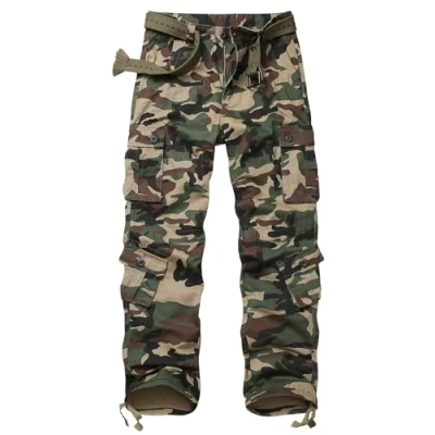 Material: The mens cargo trousers are composed of 100% cotton, which is simple to wash and wear, ripstop, durable, sweat-absorbent, breathable, soft and comfortable. Classic straight legs with a loose fit for fluid movement. Features: The work trousers men are designed to be both fashionable and comfortable.Sits at waist,loose fit, the straight leg opening with drawstring that can be tied to match with boots,and are excellent for hunting, camping, working, military and tactical type BDUs. Also, The men's casual trousers you were wearing didn't rip even as you walked over briars thanks to the double-thread sewing,durability, ripstop, and scratch resistance. Multiple Practical Pockets: The tactical trousers include nine pockets, one non-flap pocket on the right side for conveniently carrying tools, a phone or other gear; Two flat slant pockets for easy access and hands-free operation; Two buttoned back pockets offer deep, secure storage that makes it simpler to carry more personal items, while four cargo pockets offer safe storage for equipment.Furthermore, pockets are deep enough to hold items without protruding and are effortlessly accessible. Occasions: The cargo pants may be used for work, daily tasks, sports, exercise, leisure time, and outdoor pursuits including hiking, camping, paintball, climbing, skateboarding, fishing, hunting, travelling, backpacking, running, and walking.The camo trousers are also quite adaptable. Combining trainers, jackets, T-shirts and polo shirts completes a laid-back look for daily wear. For tactical training, boots and matching training clothing finish the ensemble. Note: Machine wash with low temperature or hand wash recommended.The belt must be purchased separately since it is not included. The mens combat trousers are wonderful gifts for your spouse, lover, father, kid, and friends on special occasions like Christmas, Valentine's Day, Christmas, and New Year's.