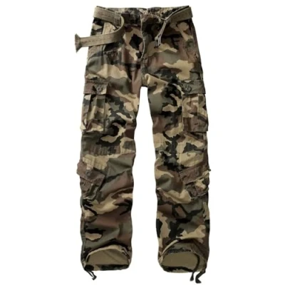 Material: The mens cargo trousers are composed of 100% cotton, which is simple to wash and wear, ripstop, durable, sweat-absorbent, breathable, soft and comfortable. Classic straight legs with a loose fit for fluid movement. Features: The work trousers men are designed to be both fashionable and comfortable.Sits at waist,loose fit, the straight leg opening with drawstring that can be tied to match with boots,and are excellent for hunting, camping, working, military and tactical type BDUs. Also, The men's casual trousers you were wearing didn't rip even as you walked over briars thanks to the double-thread sewing,durability, ripstop, and scratch resistance. Multiple Practical Pockets: The tactical trousers include nine pockets, one non-flap pocket on the right side for conveniently carrying tools, a phone or other gear; Two flat slant pockets for easy access and hands-free operation; Two buttoned back pockets offer deep, secure storage that makes it simpler to carry more personal items, while four cargo pockets offer safe storage for equipment.Furthermore, pockets are deep enough to hold items without protruding and are effortlessly accessible. Occasions: The cargo pants may be used for work, daily tasks, sports, exercise, leisure time, and outdoor pursuits including hiking, camping, paintball, climbing, skateboarding, fishing, hunting, travelling, backpacking, running, and walking.The camo trousers are also quite adaptable. Combining trainers, jackets, T-shirts and polo shirts completes a laid-back look for daily wear. For tactical training, boots and matching training clothing finish the ensemble. Note: Machine wash with low temperature or hand wash recommended.The belt must be purchased separately since it is not included. The mens combat trousers are wonderful gifts for your spouse, lover, father, kid, and friends on special occasions like Christmas, Valentine's Day, Christmas, and New Year's.