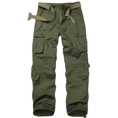 VATINNT Men's Cargo Trousers Ripstop Combat Camo Trousers Casual Tactical Work Pants with 8 Pockets No Belt 3357 ArmyGreen 29